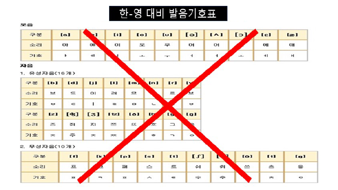 우리가 배운 '한-영 대비 발음기호표'는 우리의 영어 발음을 된장발음으로 만든 주범으로서,